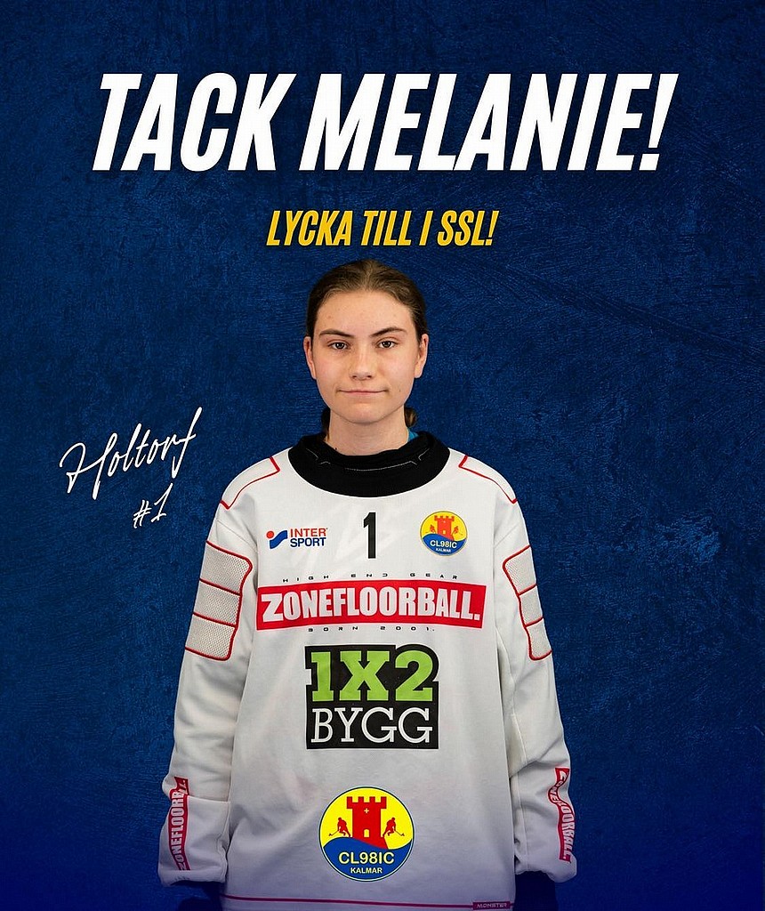 Melanie som har spelat i CL98 hela sitt liv, från innebandyskolan via flick- och juniorlag, har de två senaste säsongerna varit förstemålvakt i A-laget där hon förra säsongen bland annat blev utsedd till Division 1s bästa målvakt.