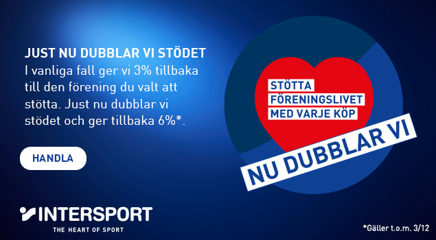 I helgen så dubblar vår samarbetspartner Intersport sitt stöd till vår förening!
