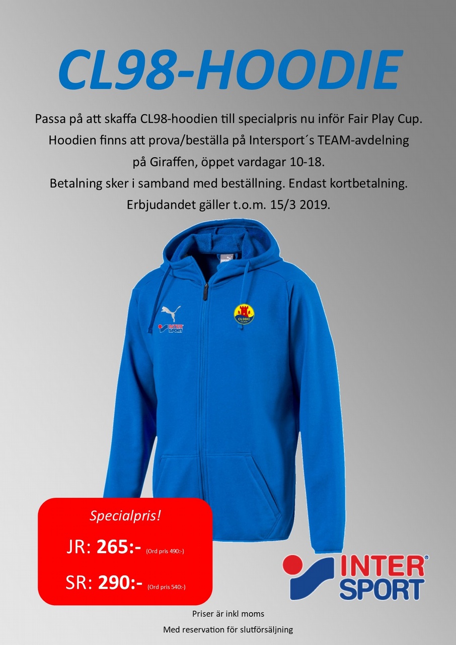 Nu lagom till Fair Play Cup så finns möjlighet igen att köpa hoddien till specialpris: JR 265:- (ord.pris: 490:-) SR 290:- (ord.pris: 540:-)