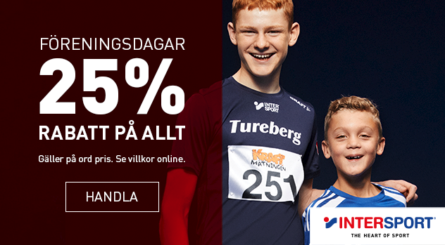 Mellan den 20-27 mars har vår samarbetspartner Intersport 25% på allt i butik och på intersport.se.